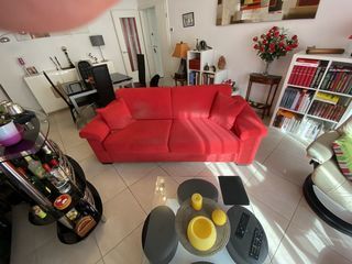 CANAPE CONVERTIBLE COULEUR ROUGE TRES BON ETAT LONG. 215CM. LARGEUR 100 CM. COUCHAGE MATELAS BULTEX 140CM. X 190CM A SAISIR A FREJUS ET A PRENDRE SUR PLACE UNIQUEMENT PAR TELEPH
