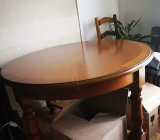Table de salle à Manger + 4 chaises en merisier authentique très bon état La table avec rallonges mesure 230 cm de long pour 104 cm de largeur. Table+2 rallonges+' Chaises = 250
