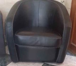 Vend fauteuil ancien en bois et cuir marron Largeur 74cm,Profondeur 69cm