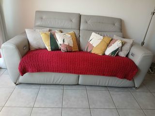 vends+canapé++en+cuir+gris+clair+2+places+relaxe+électrique.