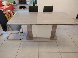 Bahut, Table, 6 chaises. Table 180x90, avec rallonge 2,18, Bahut 2,20 Ne pas hésiter pour renseignements, à faire proposition.
