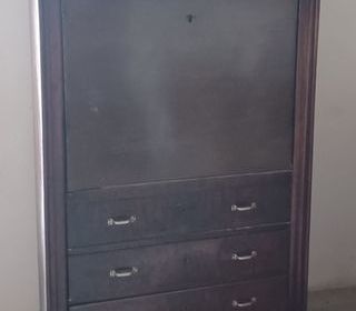 Magnifique chiffonnier très ancien, en bois massif. Il a une grande porte avec miroir et un petit tiroir en bas. Sa hauteur est de 2,4 m. Sa longueur est de 92 cm. Fermé, sa largeu