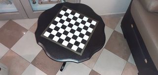 Vend guéridon style louis philippe relooké blanc et noir jeu d'échec Hauteur 58cm x Plateau 54cm