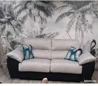 Cause déménagement et changement de décoration Canapé 3 places gris et noir très confortable, têtières réglables manuellement Les assises s'allongent pour un maximum de confor