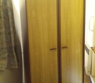 armoire ancienne ( environ 1960) en pin avec corniche. 2 portes de 168 cm x 62 cm, 4 étagères. Hauteur 211 cm, largeur 150 cm, profondeur 50 cm