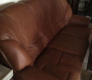 Canapé cuir marron trois places très bon état voir et prendre sur place