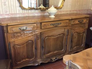 salle à manger complète de style provençal bois massif comprenant buffet 3 portes table rectangulaire et ses deux rallonges pouvant accueillir 10 convives + 6 chaises. EN parfait