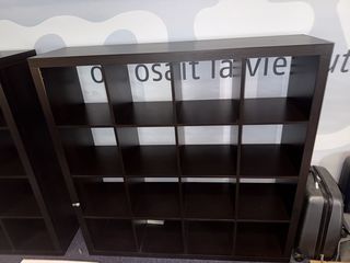 5 meubles de rangement noirs type "IKEA Kallax" en bon état. Parfaits pour bureau, salon ou espace de travail. Ils offrent beaucoup de rangements. Couleur : Noir / brun foncé Ag