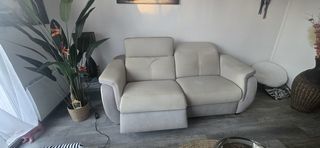 Vend Canapé 2 places en véritable cuir noir avec surpiqûres blanches. Fonction relax électrique pour un confort optimal. Très bon état, cuir bien entretenu. En voyant le canapé