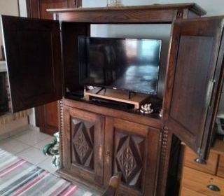 vends enfilade Alinéa, de couleur taupe, long. 145, larg. 45, haut. 80, 2 portes coulissantes, 3 tiroirs, pas de rayure, achet"ée il y a 3 ans.