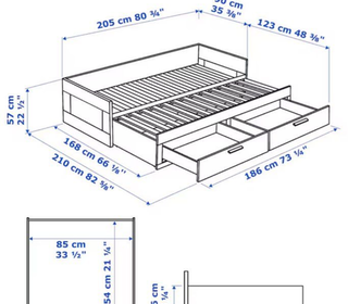 À vendre Lit banquette IKEA BRIMNES blanc avec rangements qui peut s'agrandir pour un deuxième couchage (grand lit de 160 ou 2 lits). En très bon état. Valeur neuf: 249 euros