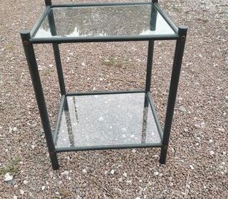Je vends cette table basse en fer forgé avec deux plateaux en verre. - Type de produit : Table basse - Matériau : Fer forgé - Plateau : Verre - Couleur : Gris - Pièce : Salon - dim