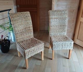 Lot de 2 chaises paille tressées ALINEA largeur 46 cm, hauteur 106 cm, assise 46 cm empiècement bois 24 cm 70 € les deux, 40 € l'unité