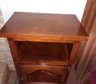 Meuble d'appoint en bois massif couleur chêne moyen Hauteur 85 largeur 60 profondeur 40 légère rayure sur le dessus règlement en espèces sur place