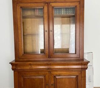 Meubles Année 60 Jaune marbré marron Parfait état 2 meubles : meuble haut posé sur meuble bas Meuble bas : L 122 cm / H 84 cm / P 45 cm Meuble Haut : L 120 cm / H 61 cm / P 33