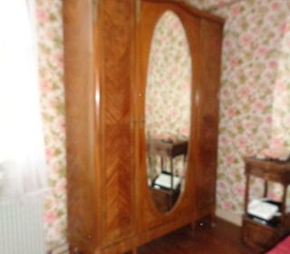 Vend armoire vernie style empire, 3 portes, porte centrale magnifique miroir biseauté ovale: L150 X P 48 X H 228