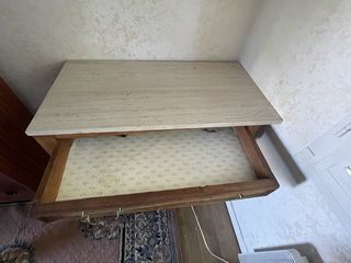 Petite table en bois avec un grand tiroir de rangement et plateau en marbre de bonne qualité petite avec une petite étagère de rangement dessous A venir chercher sur place