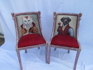 2 FAUTEUILS Style Empire Col de Cygne Duo : chien et chat hauteur du dossier 80 cm largeur de l'assise 40 cm profondeur de l'assise 35 cm entièrement rénovés avec soins et qua