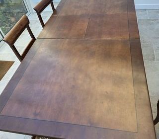 Table carrée, bois sombre, 1m20x 1m20, extensible à 1m70.