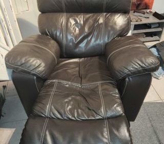 en très bon état général en cuir acheté chez Conforama couleur marron foncé brillant