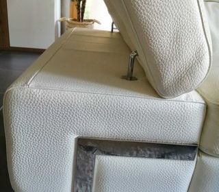 Grand canapé d'angle cuir blanc POLTRONeSOFA 5places 2m80 /2m30 2 elements séparés avec encrage Accoudoir et repose-tête inclinable Non convertible Parfait état Entretien facile