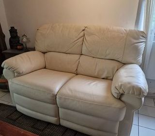 canapé 2 places en cuir pleine peau ; couleur ivoire ; mécanisme électrique pour position relax ; dim. L 150 ; H 95 ; l 90 ; assise 53.