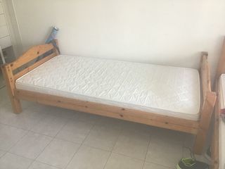 Vends 2 lits en pins 90/ 190en bon état avec quelques marques d usure + 2 matelas en mousse de très bonne qualité . Revêtement des matelas par une housse lavable et déhoussable. A