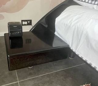 lit ROCHE & BOBOIS - Lit couchage 160 X 200 avec chevets - lit design laque noire. - bon état sauf dessous lit quelques chocs. Dimensions lit : Longueur 2,10 m Largeur 1,79 +