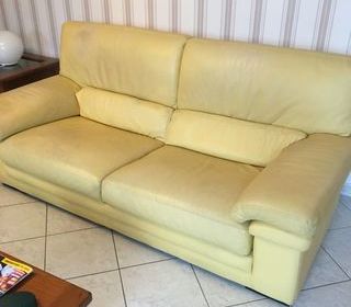 Canapé non convertible cuir jaune, dimentions. Long. 1,80m, hauteur jusq. Accoudoirs o,54m et jusqu'au dossier 0,90m - profondeur 0,54m Vendu cause déménagement, tres bon etat