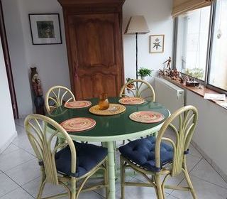 Le diamètre de la table est de 120cm et la rallonge de 60cm. 1 chaise oû il manque 1 petite pièce de bois sur l'assise mais qui n'impacte pas la solidité de celle-ci..voir photo