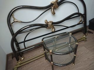 A vendre lit et chevets en métal le tout en bon état. Couleur canon de fusil et doré. Dimension 160 x 200 pour le lit et 50 x 45 pour les 2 chevets.