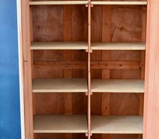 Rustique par ses lignes simples, cette armoire d'atelier est un meuble qui fleure bon l'esprit bohème. Sa patine gris-vert pâle est intéressante. Nous aimons les marques du temps q