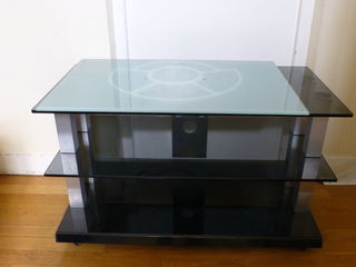 MEUBLE TV JAHNKE . Panneau arrière en aluminium - 3 plans en verre trempé de couleur noir - emplacement arrière pour les fils de la télévision - les dimensions sont : Longueur 90 c
