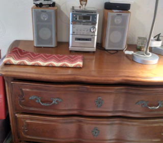Joli bahut ou commode style Luis XV courbes arrondis Noyer massif - 3 tiroirs Longueur: 110 - Profondeur 54 - Hauteur: 86 (il manque une poignée)