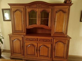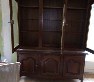 partie haute 1m20 de h x 1m47 de L et 0m36 de large. entièrement vitré avec étagères. posé sur partie basse H 0m80 x 1m57 de L et 0m46 de large. une étagère intérieure ajustable su