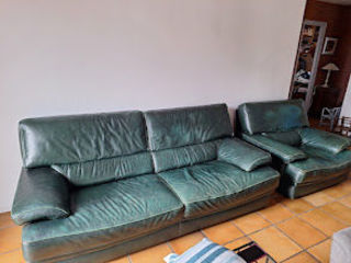 canapé 3 places en cuir vachette pleine fleur, blanc et chocolat, très confortable avec ses cale rein couleur chocolat, les assises sont en mousse à mémoire de forme 35kg/m3, on es
