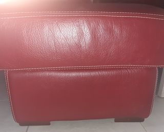 Pouf fixe cuir de Buffle 58x60 cm sur pieds en bois teinte foncé - peu servi
