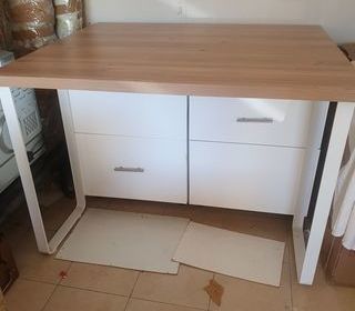 VENDS ILOT CENTRAL DE CUISINE AVEC 6 TIROIRS COULISSANTS PIETEMENT METAL LONGUEUR DE L'ILOT 126 CM HAUTEUR 80 CM PROFONDEUR 104, (faisant double emploi objet de la vente) TRES BON