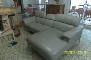 canapé 3 places en cuir blanc et chocolat, très confortable avec ses cale rein couleur chocolat, les assises sont en cuir vachette pleine fleur, assises en mousse à mémoire de form