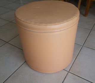 Pouf de couleur rose des années 60. Intérieur mousse, revêtement skaï. Assise ferme. Dimensions : Hauteur : 40 cm - Diamètre : 40 cm A retirer sur Toulouse ou possibilité de