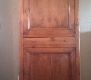 belle armoire ( homme debout ancien ), 2 portes 1 tiroir 2 étagères , hauteur : 1.97 mètres, largeur : 0.93 cm , profondeur : 0.54 cm , largeur corniche : 6 cm tel :