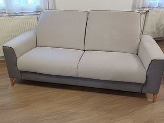 Je vends ce canapé 3 places en tissu gris. - Matériau : Tissu - Couleur : Gris - Pieds : Bois clair Têtières amovibles Très bon état, toujours recouvert N'hésitez pas à me co