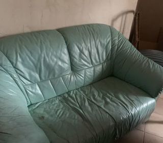 Canapés 2 places cuir vert d eau dont le cuir des assises est abîmé.longueur 140 cm largeur 89 cm et hauteur 80 cm