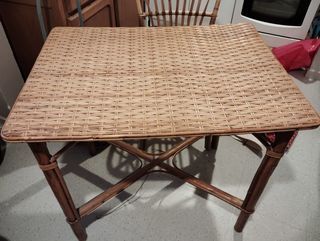 Petite table en rotin avec 2 chaises