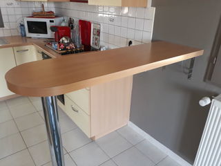 Plateau de bar 1300×380 Pied réglable + 2 equerres 2 chaises bar pliantes Très bon état.