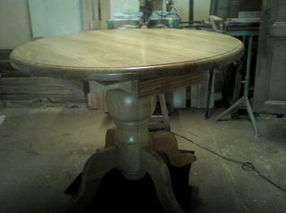 table ronde CHENE MASSIF pied centrale // plateau circulaire 1.20 m x 4 CM epaisseur escamotable pour table de jeu echecs 4 tiroirs