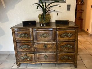 3 petits tiroirs galbés en haut 2 grands tiroirs galbés en dessous meuble de famille depuis plusieurs generations petite rénovations à prévoir