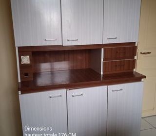 Buffet, meuble de cuisine Formica En deux parties Dimensions Hauteur totale 176 CM Largeur 120 CM Profondeur 48 CM Traces d'usure et ou traces d'utilisation A enlev