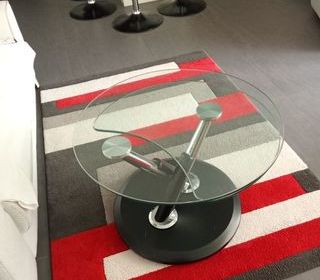 Table de salon ronde en verre trempé . Extensible. Pieds en métal "argent et noir" Dimenssions :Plateau haut Diamètre 70 cm Hauteur 50 cm Plateau bas Diamètre 64 cm Haute