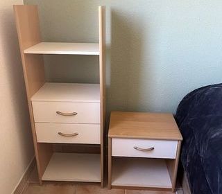 Chevet et étagère assortie (possibilité d'en acheter un seul pour 20€). Etagère : 122.5cm hauteur / 46.4 largeur / 32cm profondeur hors poignée. Chevet : 46cm hauteur / 47cm largeu